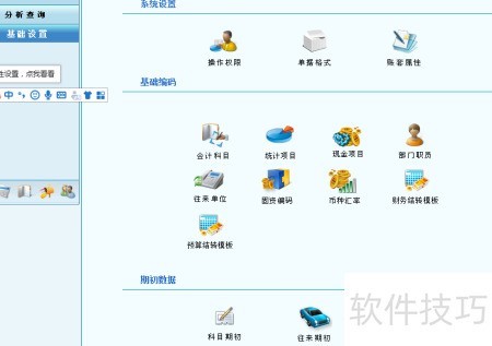 3、 进入软件后,先在左下角的期初设置中完成账务期初配置,以便后续顺利做账。