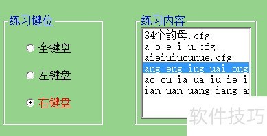 3、 学习软件界面中有一条红线,用于区分左右键盘的练习区域。通过几张示意图可直观了解按键布局,软件支持双键组合输入单个字母或音节,图中主要展示左手负责的拼音键位分布,便于快速掌握操作方式。