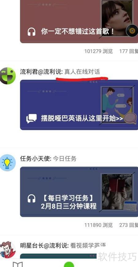2、 练习英语口语,常感叹临时抱佛脚为时已晚。使用英语流利说,能有效提升口语能力。注册后需先完成英语水平测试,明确自身等级,便于选择合适的学习内容。当学习进度达到LV3或更高,即可解锁流利吧真人互动功能,获得真实对话机会,增强开口自信。平台还提供丰富免费资源,涵盖多种主题与场景,满足不同阶段的学习需求,让口语训练更高效、更有趣。