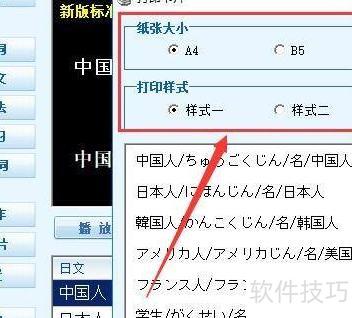 3、 在打印卡片界面左侧,选择纸张大小(如A4),并勾选打印样式中的样式一。