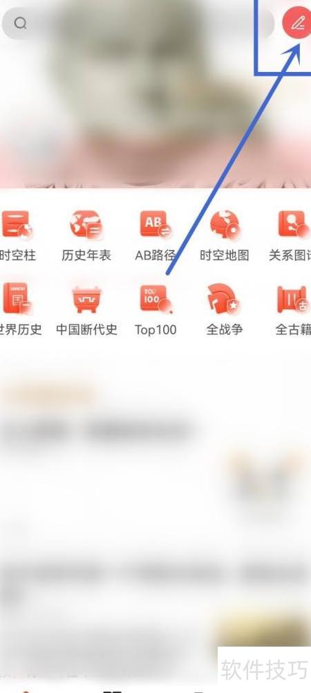 1、 进入全历史应用首页,点击右上角的铅笔标志。