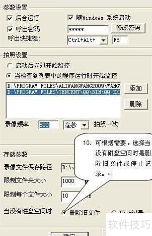 9、 可按需求设置无磁盘空间时删除旧文件或停止记录。