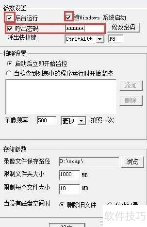 4、 先点击停止监控进入设置,选择设置调整参数,再点击开始监控启动监控,最后点后台运行即可隐藏软件。