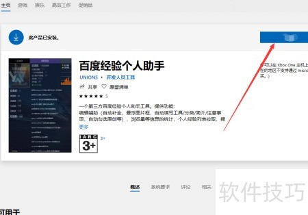 4、 搜索并选择经验助手,点击安装进入下一步界面。