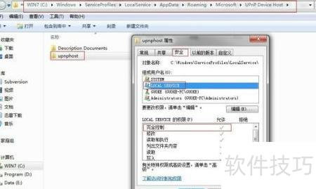 3、 需确认存放服务文件的目录已赋予本地服务账户完全控制权限。UPNP主机服务的相关注册表项位于 HKEY_LOCAL_MACHINESOFTWAREMicrosoftUPnP Device HostHTTP ServerVROOTSupnphost,其中记录了实际文件路径。以本人计算机为例,该路径为 C:Documents and SettingsLocalServiceApplication DataMicrosoftUPnP Device Hostupnphost。若权限设置不当,可能导致服务无法正常读取或写入所需文件,从而影响功能运行。因此,在进行相关配置时,应进入对应文件夹的属性安全选项卡,检查并添加本地服务用户,确保其具备完全控制权限,包括读取、写入、修改和删除等操作。此步骤对保障UPNP设备主机服务稳定运行至关重要,尤其在系统更新或重装后容易被忽略,建议定期核查权限配置是否完整有效。