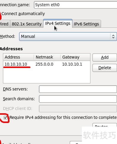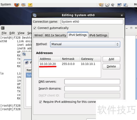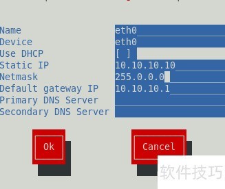 3、 仅保留system eth0选项,其余删除。按照图示配置system eth0,其中作为服务器的设备IP设为10.10.10.10,另一台设备IP设为10.10.10.20,确保网络连接正确无误。
