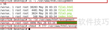 18、 检查目录 /var/www/html/assignment 及其内部文件 file1.html、file2.html、file3.png 和 index.html 的当前权限,并将这些文件和目录的权限统一修改为完全访问权限,即赋予所有用户读、写、执行权限。