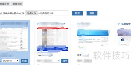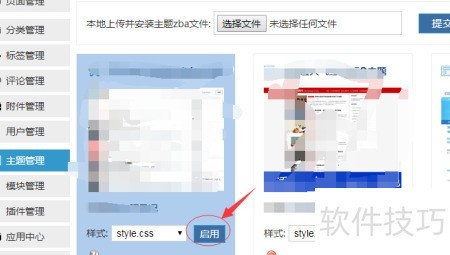 5、 在zblog导航栏的主题管理界面中,找到已下载的主题,点击启用即可完成模板配置。