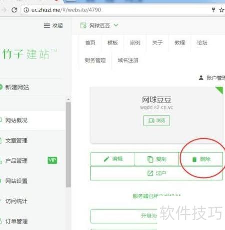 5、 选择模板后若不满意,可进入我的站点找到后台页面,点击删除即可移除当前站点。