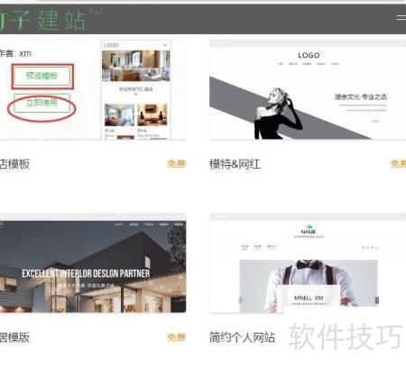 1、 进入竹子建站网站,登录后进入后台,点击,进入模板页面。页面展示各类行业分类与模板列表,用户可根据需求自行筛选合适的模板进行选择和使用。