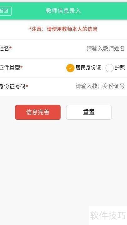 4、 请先如实填写教师信息,完成后点击信息完善按钮。