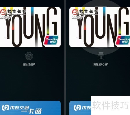 7、 收银员完成POS设置后,将手机靠近感应区域,手机会自动显示MI Pay界面。选择要使用的银行卡,按提示验证指纹,随后即可贴近POS机完成支付。