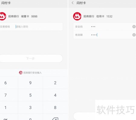 3、 输入卡号后,需填写交易密码(即银行卡取款密码);信用卡用户则需输入安全码与有效期,核对信息无误后点击下一步继续操作。