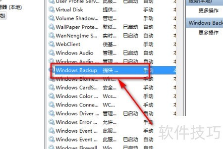 5、 在右侧菜单栏中找到Windows备份选项,点击打开即可查看相关服务说明。