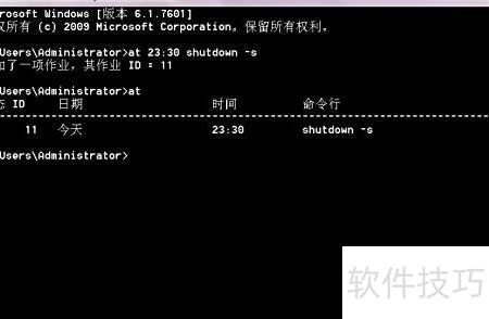 2、 在电脑上设置23:30自动关机,只需打开CMD命令提示符,输入 at 23:30 shutdown -s 后按回车即可完成定时关机设置,操作简单方便。