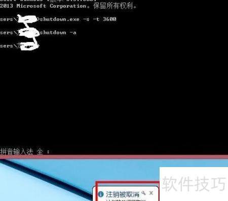 6、 若需取消操作,可在窗口中输入 shutdown -a 命令即可。
