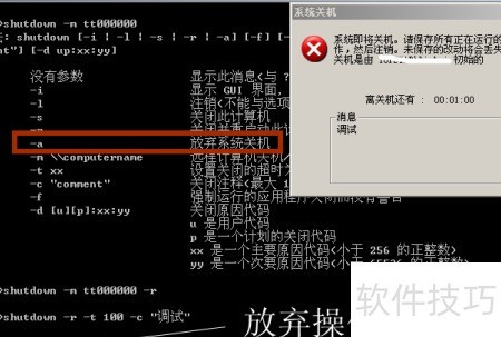 3、 若要取消当前操作,请输入 shutdown -a 命令。