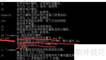 4、 使用shutdown命令时,参数-s用于关闭计算机,参数-t用于设置关机倒计时。将两者结合可实现定时关机功能。例如,输入shutdown -s -t 1000表示系统将在1000秒后自动关机,时间单位为秒。执行该命令后,系统会开始倒计时,并在指定时间到达后自动关闭,具体效果可通过界面提示查看。