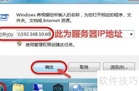 3、 系统管理员在客户端电脑的运行框中输入:192.168.10.60,然后按回车键执行。