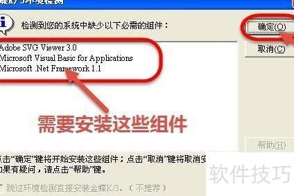 9、 显示需安装的组件清单,确认后点击确定按钮。