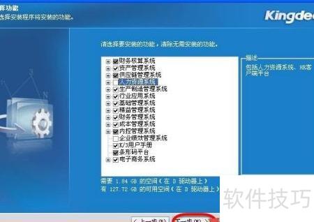16、 按企业实际需求选择功能模块,勾选后点击下一步继续安装。