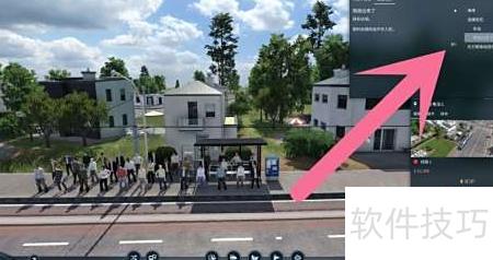 5、 打开公交面板后,点击右下角按钮即可停车。