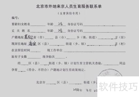 3、 提供北京市生育服务登记单或流动人员生育服务登记单的复印件。