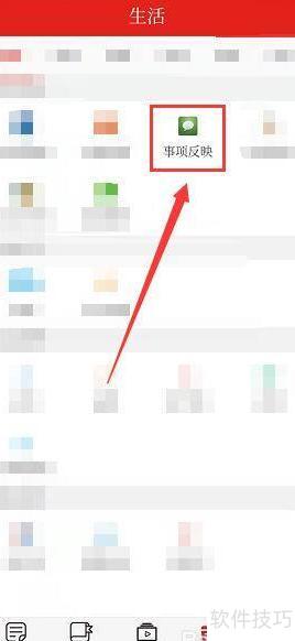 2、 进入生活页,点击事项反馈选项。