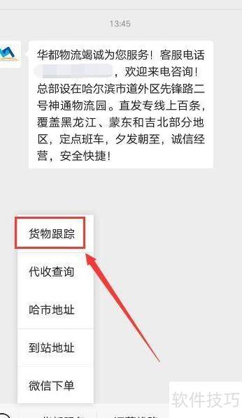 4、 进入公众号,选择华都服务中的货物跟踪功能。