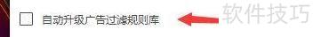 、 在设置界面中,开启自动更新广告过滤规则库选项。