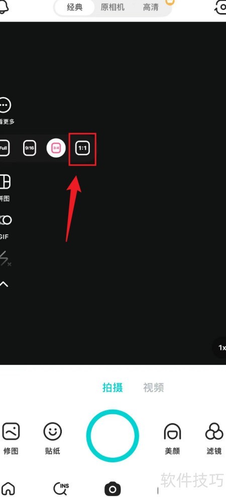 4、 B612咔叽已将画面比例调整为1:1。