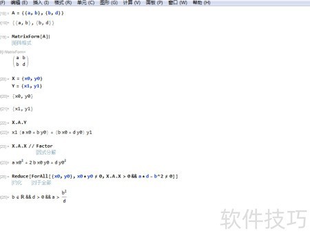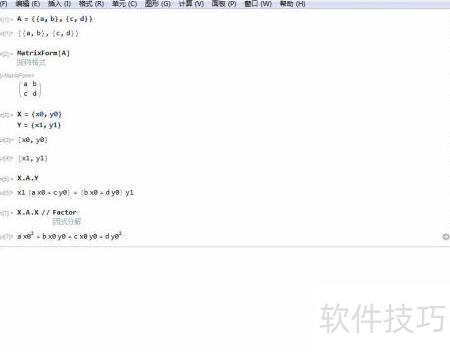 4、 在Mathematica中,X.A.Y表示上述双线性型,其计算结果为: