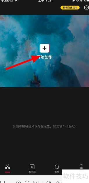 1、 打开剪映,选择开始创作功能。