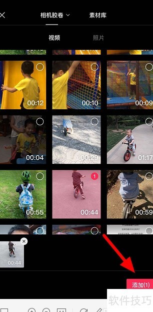 2、 选视频后点击添加按钮。