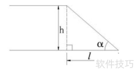 4、 角α的正切等于对边与邻边之比,即 tan∠α = h / l。