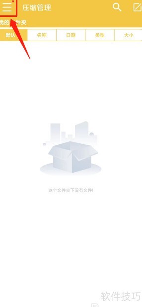 1、 打开解压专家应用,点击右上角三条横线图标。