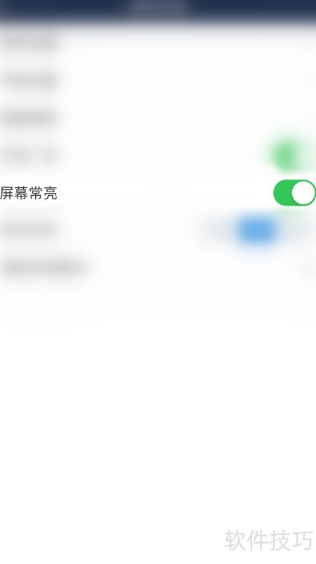 4、 在通用设置中点击屏幕常亮选项右侧的圆点。