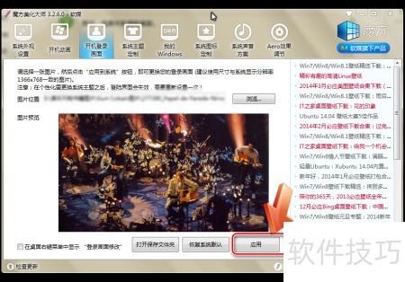 4、 选择图片后点击应用,在弹出的提示框中选择是,即可完成开机登录画面的更换。