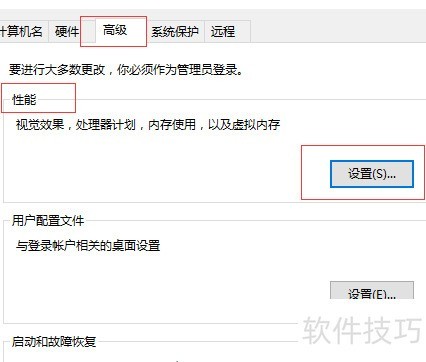 6、 在左侧选择高级系统设置,打开系统属性窗口后切换至高级选项卡,点击性能区域的设置按钮。