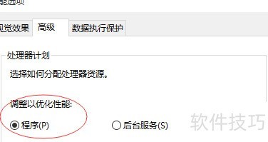 7、 打开性能设置窗口,关闭多余特效,并在高级选项中将处理器计划调整为程序模式。