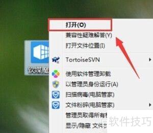 2、 选中软件后右键点击,选择打开选项,操作所示。
