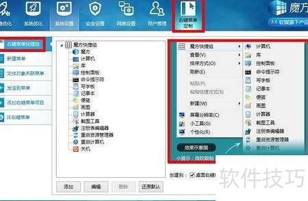 5、 魔方优化大师助您轻松设置电脑,支持关闭睡眠模式,并提供特色功能右键快捷应用组,提升操作效率。