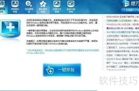 4、 魔方修复大师专治各类系统顽疾,尤其擅长图标修复,使用便捷高效。