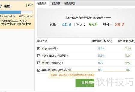 8、 魔方磁盘大师可便捷检测磁盘性能,虽小功能略有不足,但作为两年前的产品,整体表现仍属不错。