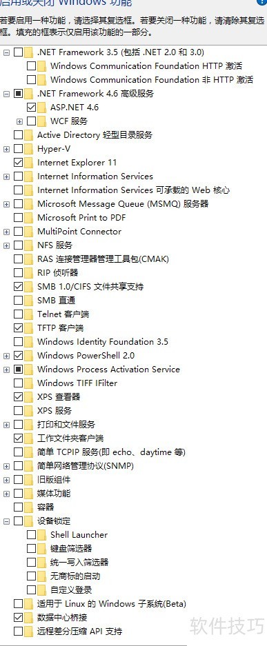 3、 确认系统无病毒后,按下Win+X组合键,选择控制面板,进入程序选项,点击程序和功能,然后打开启用或关闭Windows功能窗口。接下来开始进行设置调整。首先找到Active Directory 轻型目录服务,若无需相关安全功能,建议取消勾选。接着查看Internet Explorer选项,在Windows 10系统中,默认浏览器已升级为Edge,由于部分应用依赖其运行,不建议关闭;而对于Windows 7等旧版本系统,IE界面陈旧,操作体验不佳,国人普遍难以适应,可考虑关闭。关于Hyper-V功能,属于虚拟化技术,普通用户使用频率较低,建议关闭以节省资源。媒体功能包含老旧的媒体组件,如今有更多优秀替代软件,可放心取消勾选。而TFTP客户端建议开启,便于网络传输与设备调试。另外,远程差分压缩功能可用于检测并修复文件传输中的错误,虽然系统通常运行稳定,但开启更稳妥,推荐勾选。如果是Windows 7系统,还可取消桌面小工具的勾选,因其存在安全隐患且实用性低。整体设置参考示意图即可完成优化,让系统更简洁高效。