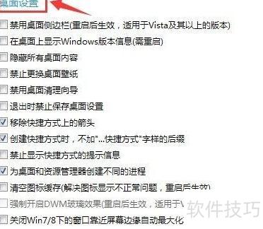 7、 进入桌面设置,勾选所需选项,操作示。