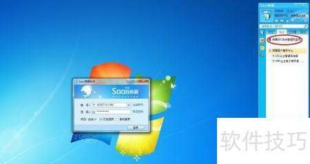 2、 安装完毕后,桌面上将显示saaii商翼海豚的快捷图标,双击该图标会弹出登录界面。企业系统管理员或商翼指定的执行官需输入预先注册的账号与密码,点击登录按钮。成功登录后,界面右侧将出现一个类似QQ聊天系统的沟通工具,功能布局清晰可见,便于用户即时交流与操作,具体效果可参考图示中右侧红圈标注部分。