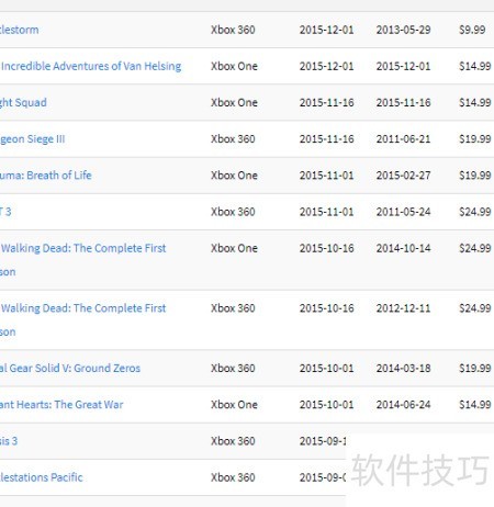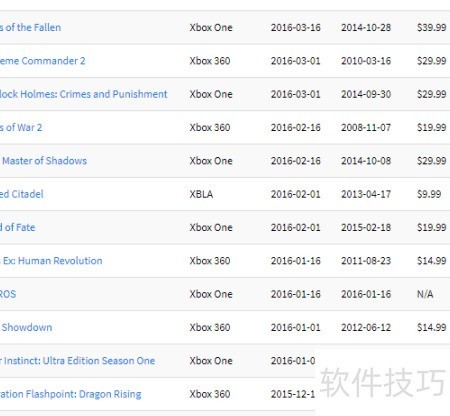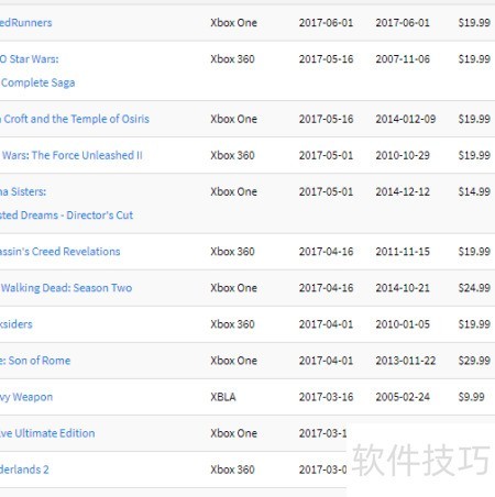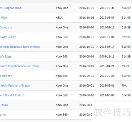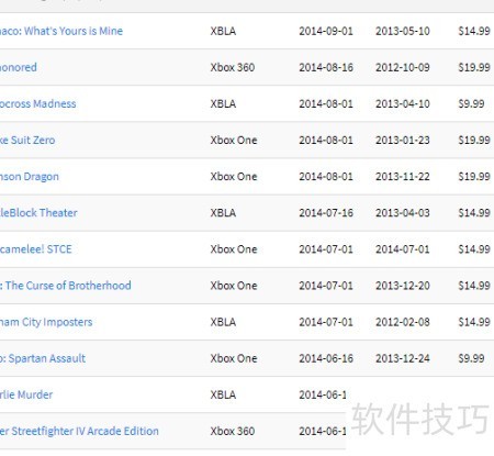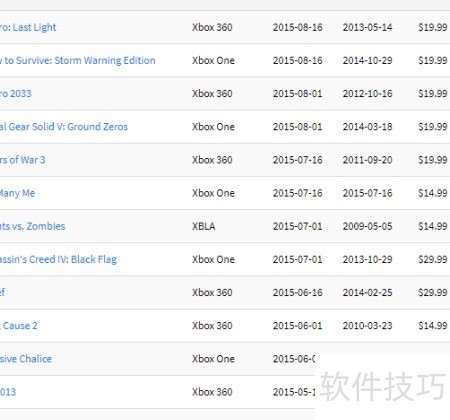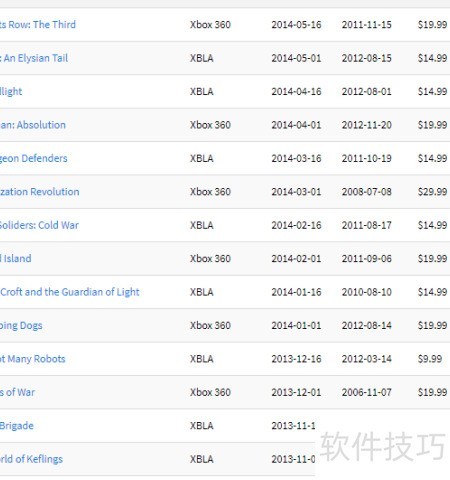 4、 以下为历次金牌会员免费游戏的完整列表,每款游戏标题均附有直达Xbox.com商城的链接。Xbox Live用户可在空闲时段登录网站,无需通过主机即可领取相应游戏。表中GWG发布指该作作为金牌免费游戏上线的日期,原始发布表示游戏最初登陆Xbox平台的时间,而常规价格则记录了其在参与免费活动前于Xbox商店的数字版售价,并非实体零售定价。此信息便于玩家追溯和了解各作品的历史获取方式与市场价值。