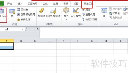 2、 在顶部菜单栏依次点击开发工具,然后选择Visual Basic。
