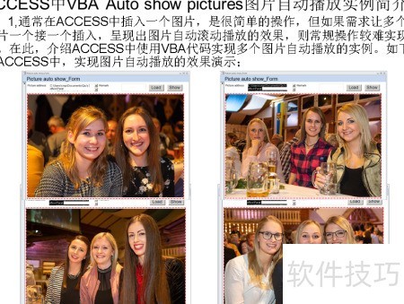 在ACCESS中插入单张图片较为简单,但若需实现多张图片依次插入并自动滚动播放,常规方法难以完成。本文通过实例展示如何利用VBA代码在ACCESS中实现多幅图片的连续自动播放效果,提升界面展示的动态性与实用性。